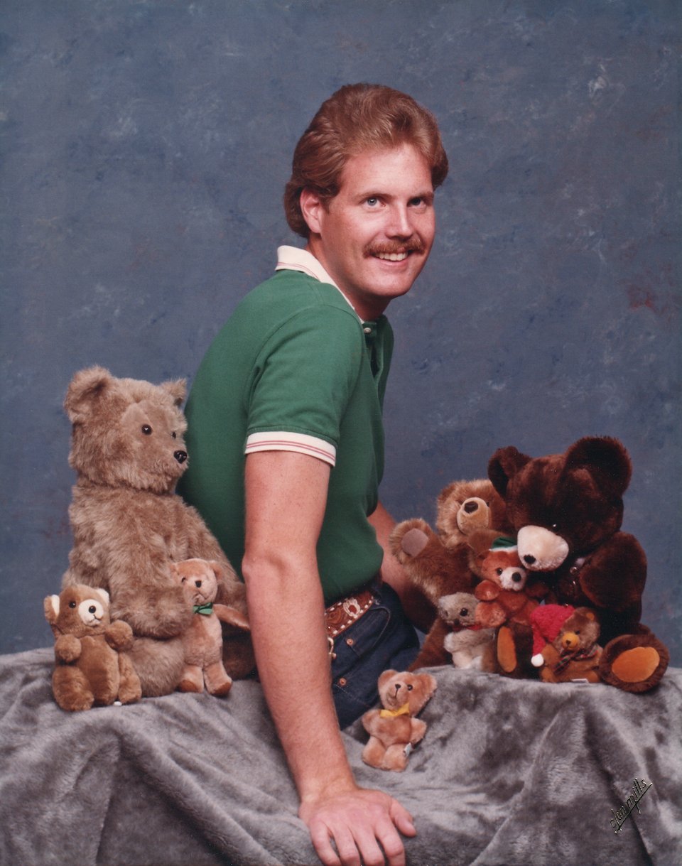 From his husband Ben Aqua: “Back when Gery sported a magical dad stache and fluffy 70s disco hair (him and I obsessed over ELO), he booked a group portrait session at Olan Mills photo studio. He showed up alone, holding a bag. The photographer asked him where his group was, and he replied, "right here.” He then unloaded a bag full of teddy bears, strategically placing them in a delightful arrangement around himself. Genius."
