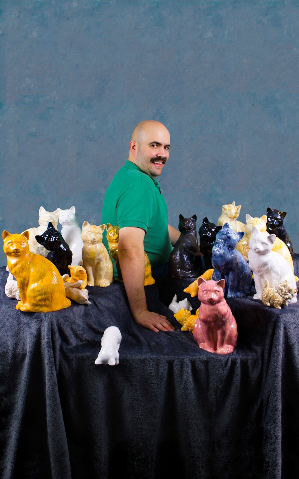 In Homage, I recreated a scene from Gery’s past (circa the 80s) and made it about my present. In the original photo, Gery booked a group photo package at an Olan Mills studio and showed up with just himself and two trash bags. When the photographer asked where the rest of his group was, he said they were in his bag. He surrounded himself with a collection of teddy bears. He acknowledged his unique freakiness and pushed the boundaries. He was an artist before he knew he was an artist. He was the type of ceramic friend, brother, and lover I still need in my life.