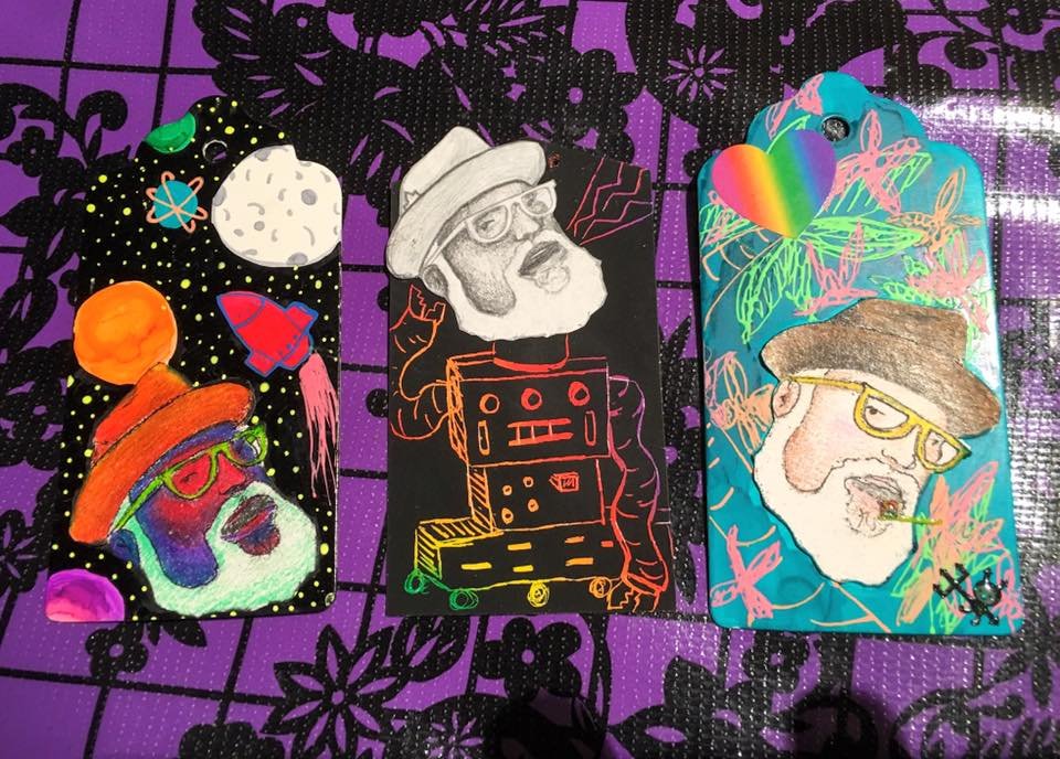 During that summer after his diagnosis, there was a Facebook support group that emerged to support Gery. It was a way to communicate with each other rather than text Ben non-stop. I made a rough cameo necklace as part as an art demo and I started to wear it everyday. I posted the image to the group, and it blew up. Everyone wanted one, so I uploaded a better drawing and a sticker sheet and let it go. The following are some of the examples of the art people made during this outpouring of collective love while he was in the hospital, and then once again during his memorial party.